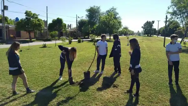 Los jóvenes realizaron esta acción en beneficio del ambiente y, como parte de la actividad, el equipo técnico de la Dirección de Ambiente y Desarrollo Sustentable ofreció una charla para 4º año sobre el cambio de paradigma que implica esta acción y la importancia de aprender a cuidar y a respetar la naturaleza.