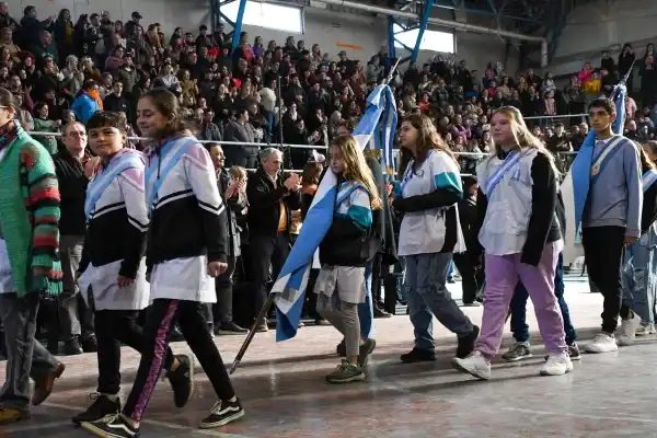 La celebración continuó en el gimnasio del Instituto Corazón de María (ICM), lugar en el que alumnos y alumnas de 4° año de todas las escuelas primarias del distrito realizaron la Promesa a la Bandera.