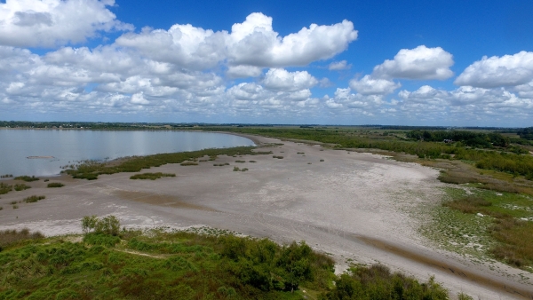 Amplios sectores de la laguna de Chascomús quedan al descubierto como consecuencia de la grave sequía