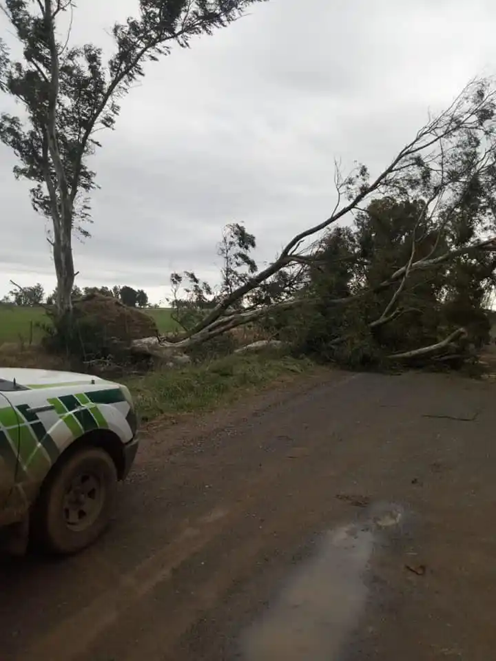 Caída de árboles, voladura de techos y roturas de galpones fueron los principales daños que se reportaron durante la jornada.