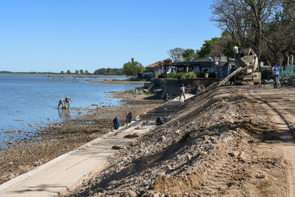 En las últimas jornadas continuó el avance de los trabajos en el área cercana al Espigón de Pesca. La obra consiste en la recuperación de la muralla de piedra y la reconstrucción de las escalinatas de hormigón en el tramo frente al Parque de los Libres del Sur, desde la avenida Lastra hasta el espigón de pesca “Domingo F. Cazaux”.