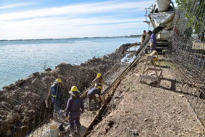 Avanzan las obras en la muralla de la costanera de Chascomús