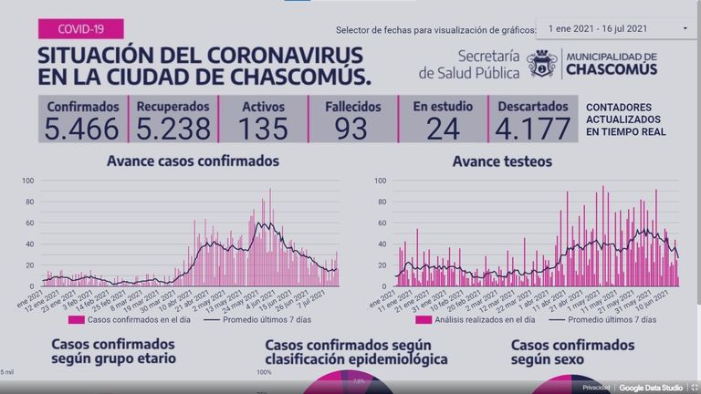 Durante el día de ayer, viernes, la Sala de Situación de Chascomús registró 17 nuevos casos positivos de Covid-19, cerrando el día con un total de 135 activos.