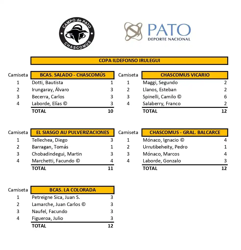 Las actividades comenzarán ambos días a las 10:30 horas en la sede de la asociación, ubicada en la Avenida Juan Manuel de Rosas. La competición, que cuenta con hasta 12 tantos de ventaja, pondrá a prueba a equipos como Barrancas La Colorada, Barrancas del Salado, El Siasgo AU Pulverizaciones, y el equipo anfitrión, Campo de Pato Chascomús Vicario, que formará un combinado con la Subcomisión de Pato Balcarce.