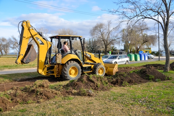 Las obras se iniciaron el martes con la demarcación del sendero y el movimiento de suelos previos a la construcción del sendero en el bulevar central de Escribano y la avenida Costanera Pedro Urruty.