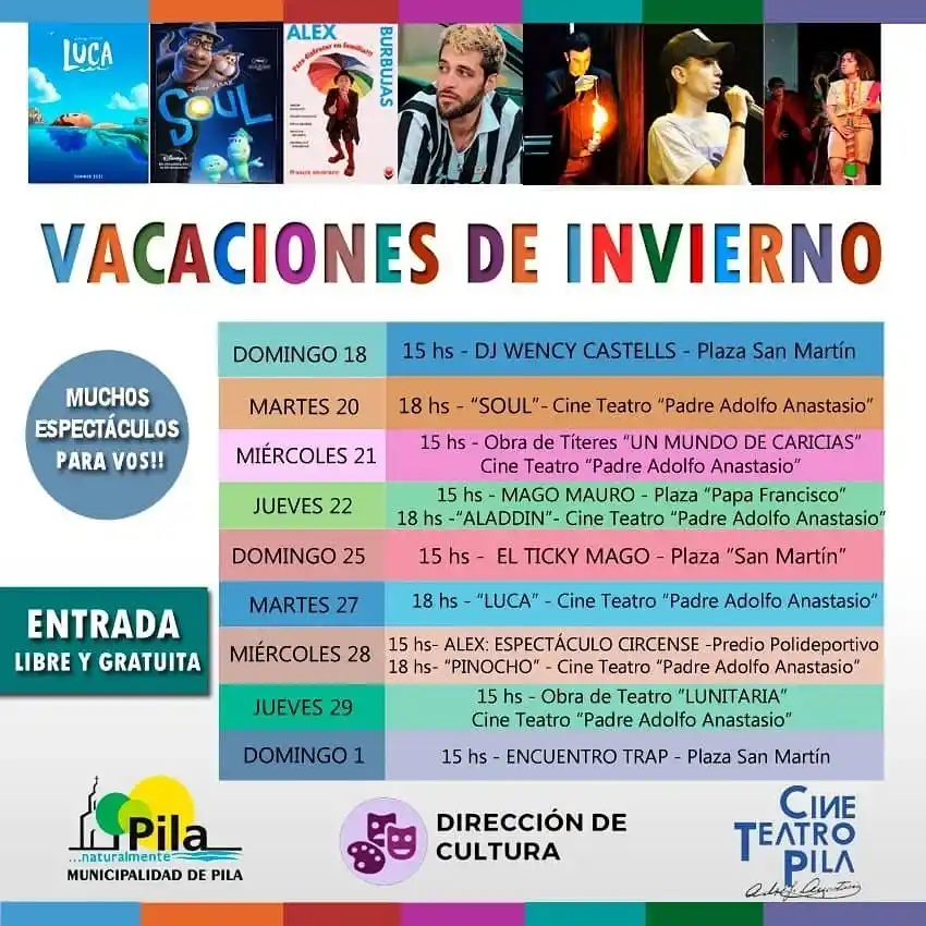Cronograma de actividades para vacaciones de invierno en el cine-teatro de Pila