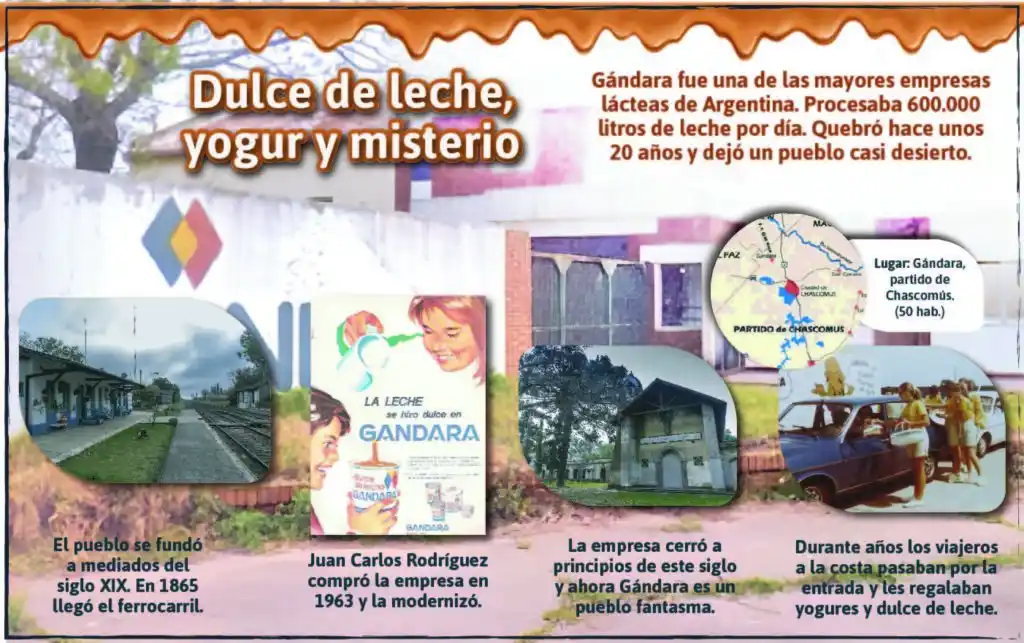 Salir hacia Mar del Plata, tomar la Ruta 2, antes de Chascomús doblar hacia la derecha, recibir muestras de yogurt y dulce de leche, volver, tomar agua mineral gratis, seguir hacia la Costa Atlántica. Esta secuencia está grabada en la memoria de mucha gente y se repitió durante décadas mientras existió en el pueblo de Gándara la empresa lechera homónima. Pero veinte años atrás la firma, que en su momento cumbre procesaba 600.000 litros de leche por día, cerró y la localidad comenzó a afantasmarse.