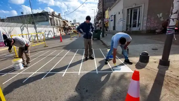 Como parte de estas acciones, se inició el repintado de las sendas peatonales y de sectores específicos para el estacionamiento de motovehículos, en la calle Libres del Sur entre avenida Lastra y Bolívar.