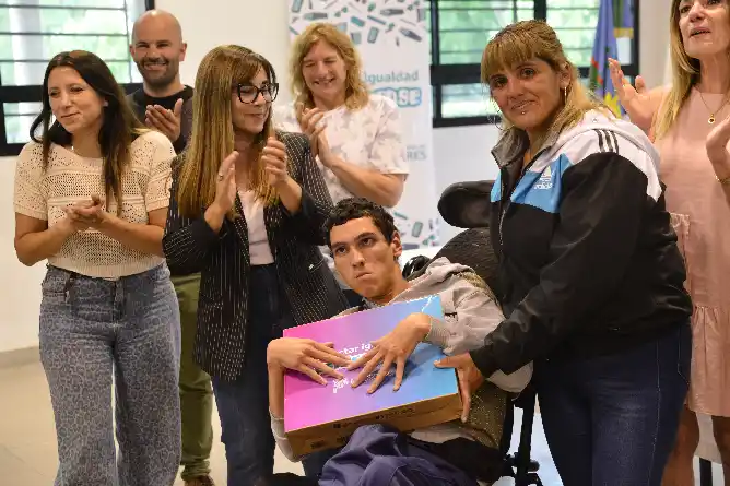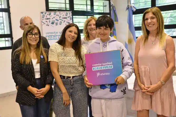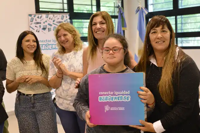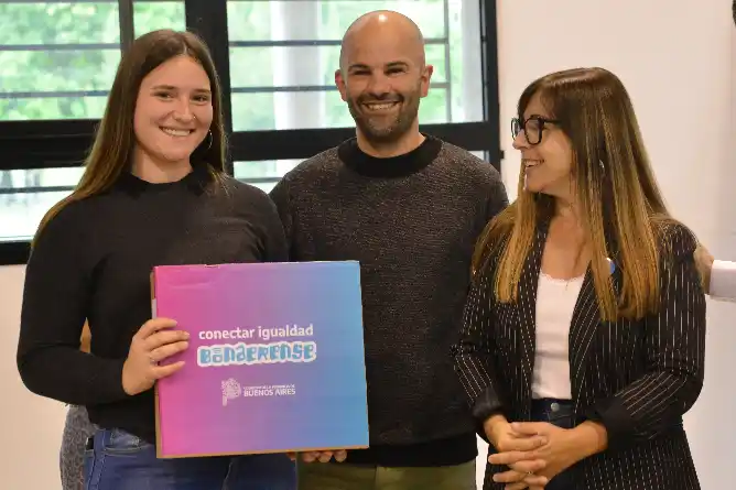 La entrega forma parte del programa Conectar Igualdad Bonaerense, a través del cual el gobierno de la provincia de Buenos Aires provee equipamiento tecnológico a estudiantes de escuelas públicas de cada municipio.