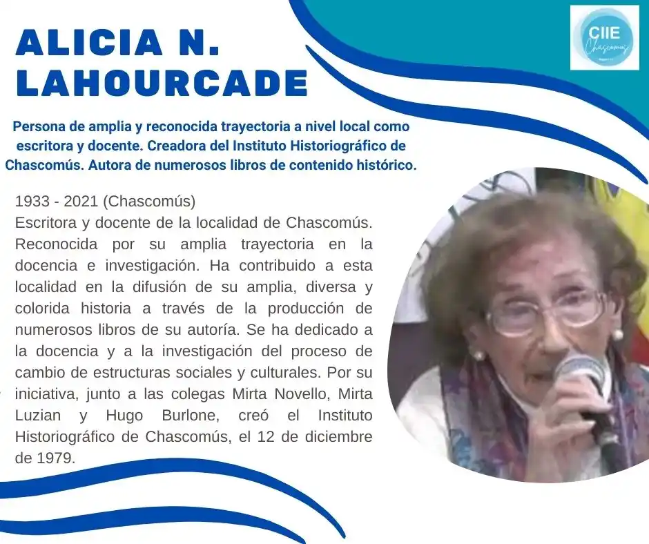 El CIIE Chascomús llevará el nombre de quien fuera docente, investigadora y escritora de la localidad, Alicia N. Lahourcade, recordada por su trayecto y aporte a la comunidad, además creadora del Instituto Historiográfico de Chascomús.