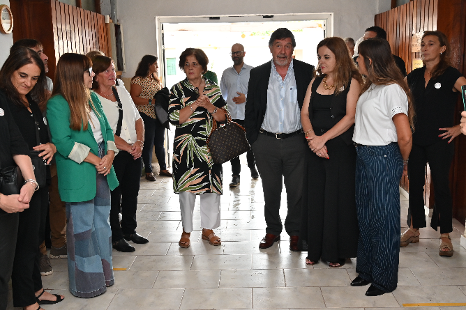 Sin embargo, tras la reunión en la municipalidad, el ministro y el intendente se dirigieron a la institución ubicada en Alvear y 25 de Mayo, donde conversó con el personal docente y auxiliar y descubrió dos placas en homenaje a la trayectoria del establecimiento educativo.