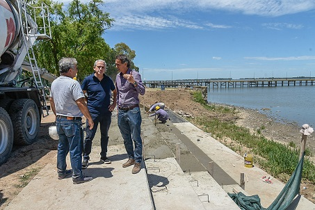 Luego la comitiva recorrió las obras que se efectúan en la Defensa Costera que consiste en la reparación de 380 metros de murallón que se extiende al sur desde el restaurante del Club Náutico hasta el espigón de pesca. Esta etapa consiste en la recuperación de las murallas y las escalinatas del sector situado frente al Parque de los Libres del Sur, a fin de evitar futuros derrumbes.