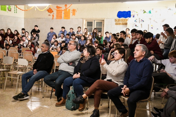 El Intendente Municipal Javier Gastón fue invitado por la escuela Divino Corazón, a participar de la charla de Julio Aro, veterano de guerra.