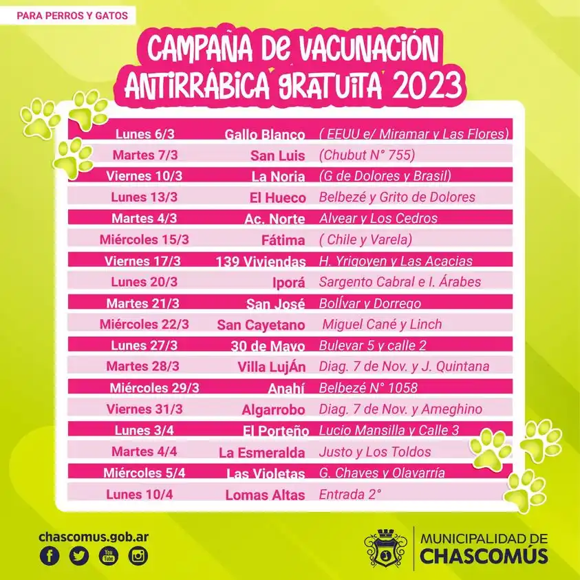 Cabe recordar que la campaña es gratuita y apunta a la tenencia responsable de los animales, cumpliendo con las vacunas anuales de los animales domésticos (perros y gatos), en este caso, la vacuna antirrábica, a partir de los tres meses de vida, teniendo en cuenta que la rabia es una enfermedad zoonótica, que puede transmitirse entre animales y seres humanos y la misma puede ser mortal.