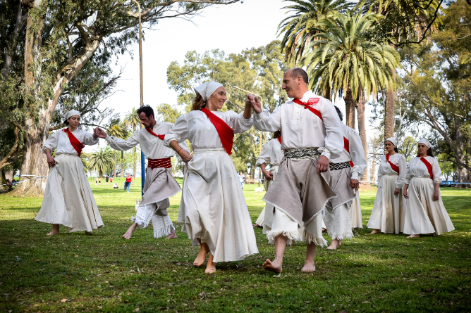 Por la noche, el Museo Pampeano se vistió de folklore para dar lugar a una velada artística, de la cual tomaron parte singulares voces de nuestra ciudad, como Pancho Auzoberría junto a Juan Ochoa, y Alexis Oyhamburu.
