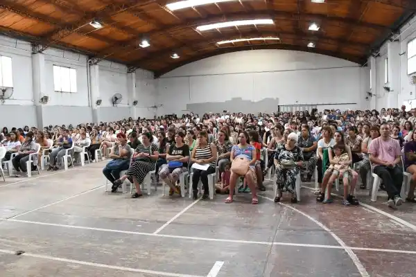 La ministra de Hábitat y Desarrollo Urbano de la provincia de Buenos Aires, Silvia Batakis, y el intendente Javier Gastón encabezaron el sorteo público realizado en el SUM de la Escuela Municipal Nº 2.