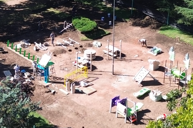 Fueron instaladas las nuevas estructuras de entretenimiento infantil en la plaza Sarmiento