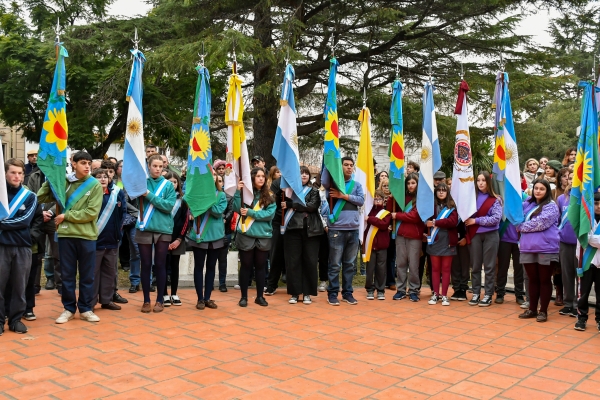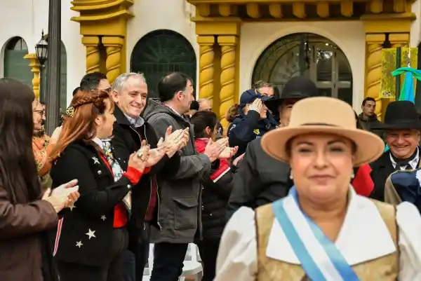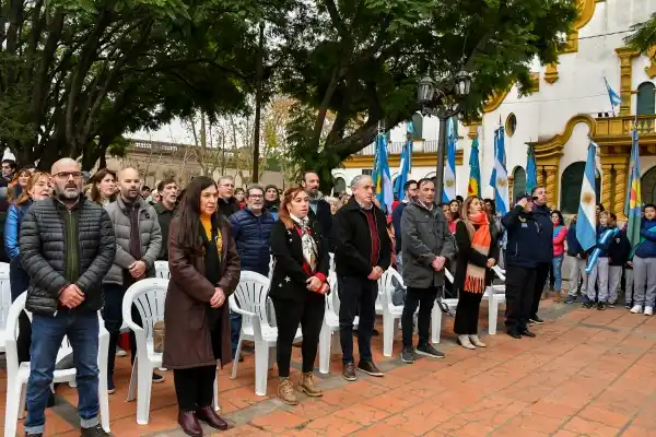 El intendente Javier Gastón encabezó el acto oficial que se realizó en la misma plaza, destacando la importancia de la fecha y agradeciendo a la comunidad por su constante participación y acompañamiento.