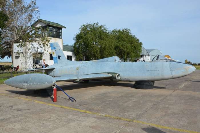 La aeronave expuesta, es un reactor de entrenamiento avanzado diseñado por la firma italiana Aermacchi, la cual lo denominó MB-326. Su primer prototipo, alzó vuelo en diciembre de 1957 y al año siguiente la Aeronautica Militare Italiana (AMI) realizó un pedido por un lote de pre serie. Finalmente terminó adquiriendo 135 aparatos del Macchino (apodo italiano), que estuvieron en servicio por veinte años a partir de 1962.