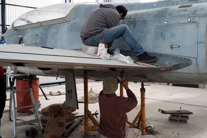 El Taller Aeronaval Punta Indio, contribuyó con el aporte de antenas, luces y algunos carenados faltantes del fuselaje y los que no se pudieron conseguir fueron replicados en fibra de vidrio.