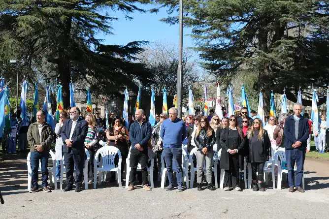 El evento, organizado por el Consejo Escolar de la ciudad, contó con la participación de consejeros escolares, autoridades educativas y municipales, además de abanderados y escoltas de distintas instituciones locales.