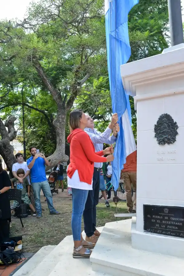 Luego se trasladaron a la plaza Independencia, donde fueron recibidas las banderas de ceremonia y, tras entonar las estrofas del Himno Nacional Argentino interpretado por la Banda Municipal de Música, se escucharon las palabras de Ana María Sallenave, integrantes de la Comisión Municipal de la Memoria, y del intendente Javier Gastón.