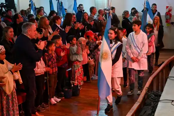 Y se escucharon los primeros acordes de esta canción que interpretó la Banda Municipal de Música, con las voces de Cecilia Varela y Agustina González, acompañadas por el Chino Bobadilla.