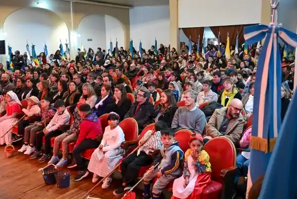 Con el teatro municipal Brazzola colmado, se desarrolló el acto oficial, desde las 11, donde se entonaron las estrofas del Himno Nacional Argentino, a cargo de la Banda Municipal de Música “Prof. Jaime Lareu”.