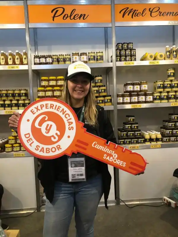 Más tarde, mientras cumplía con otros trabajos (fue moza y niñera), comenzó a incursionar en la sala de extracción de la miel. Cuenta también que Fabián fue invitado en varias oportunidades a participar de la feria en la Vieja Estación, pero que por su trabajo en el campo no contaba con el tiempo suficiente. Entonces, en 2018 ella misma tomó la iniciativa de atender el puesto donde ofrecían sus productos: propóleo, miel y jalea real; durante la semana de la miel.