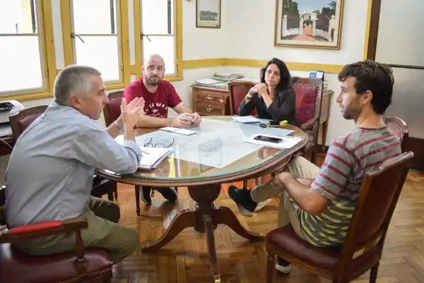 Los secretarios de Desarrollo Turístico, Productivo y Cultural, Pablo Nápoli, y de Gobierno, Cipriano Pérez del Cerro, junto a la directora de Turismo, Soledad Marconi, se reunieron con Facundo Cánepa, representante de la empresa que está a cargo de la estancia La Alameda.