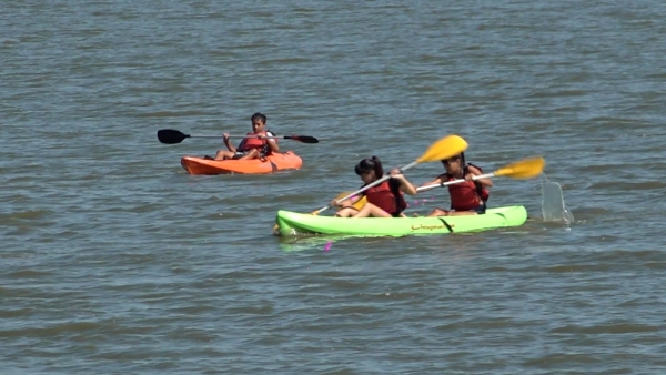 Participantes del grupo Envión realizaron el tradicional cruce de la laguna en kayak