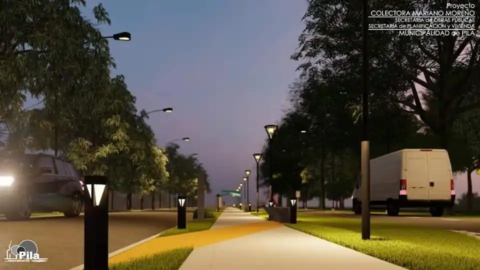 La idea del proyecto surge de la Secretaría de Obras Públicas municipal y Planeamiento y Viviendas, y consiste en intervenir y valorizar el acceso principal a la ciudad de Pila, jerarquizando el tramo de la Ruta Provincial 57 que recorre nuestra ciudad y creando la calle “colectora” Mariano Moreno (calle 2).