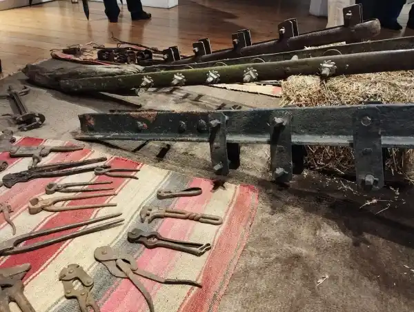 Esta exposición reúne piezas originales de los primeros cien rollos de alambre que llegaron a la Argentina en 1845 con Richard Blake Newton, las primeras herramientas que se utilizaban para alambrar y una selección de obras que las acompañan e introducen al espectador al significado e importancia del alambrado.
