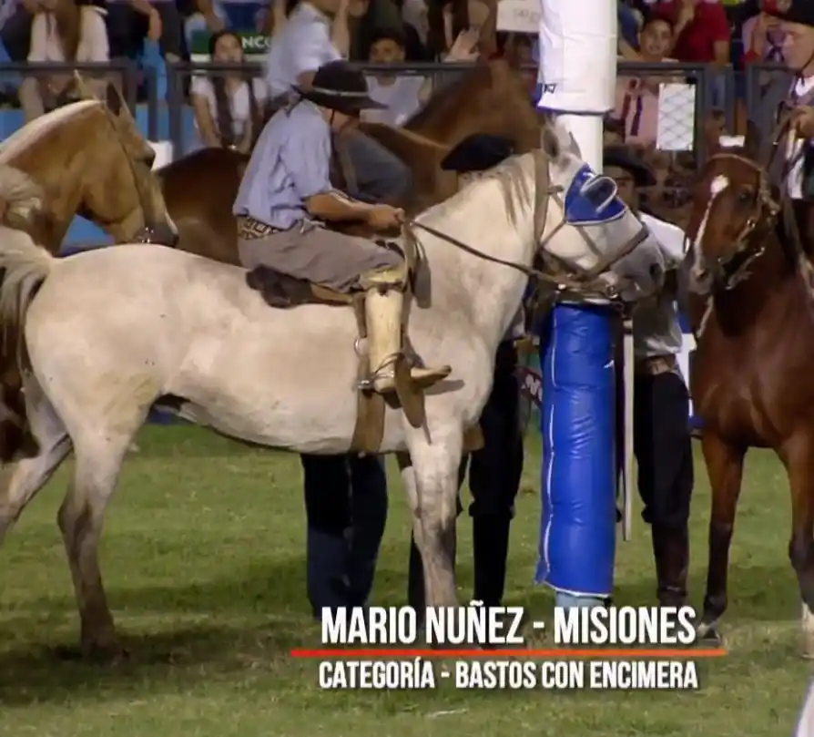 Mario Núñez, representando a la provincia de Misiones en el evento tradicionalista más grande del país, pudo mantenerse encima del potro durante los interminables 12 segundos que dura la monta en la categoría Bastos con Encimera Lisa.