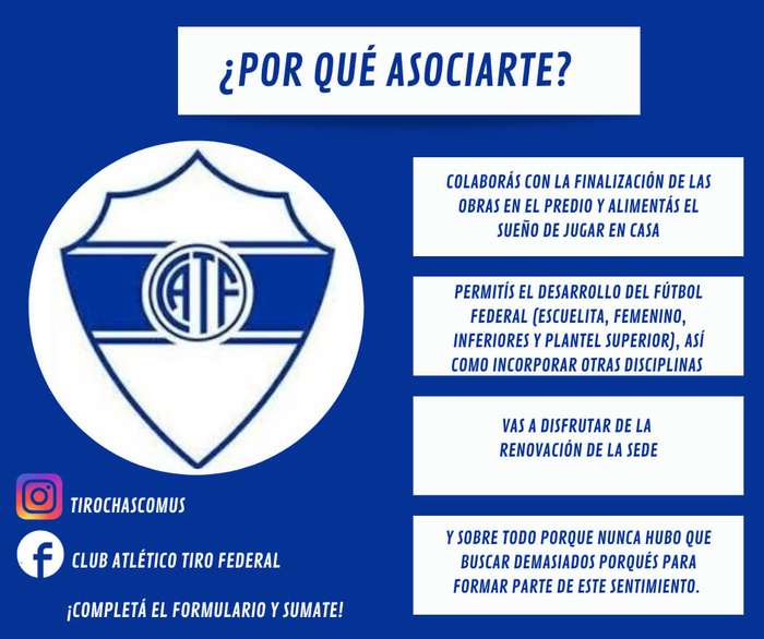 A través de un comunicado en las redes oficiales, el Club Atlético Tiro Federal de Chascomús informó sobre la situación actual de la institución que se encuentra en una etapa de sostenido crecimiento. Ante ello, apelaron al acompañamiento, colaboración e invitaron a asociarse a través de un formulario online.
