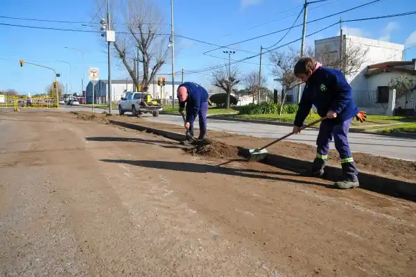 Con maquinaria municipal durante la jornada se procedió al retiro del excedente de tierra en las dos líneas de canteros centrales, a metros de calle La Porteña, trabajos que se extenderán hasta la intersección con Hipólito Yrigoyen.