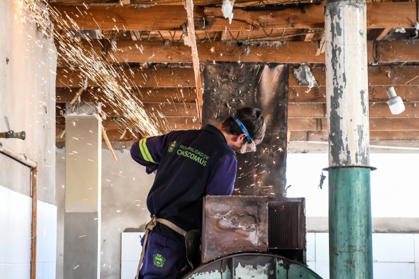 Además, se cambió toda la instalación eléctrica del sector, incluyendo el área de costura, y se está restaurando la cámara de fuego de la secadora industrial. Las tareas concluirán con la instalación de nuevos cielorrasos hechos de material ignífugo y la pintura de todo el espacio.