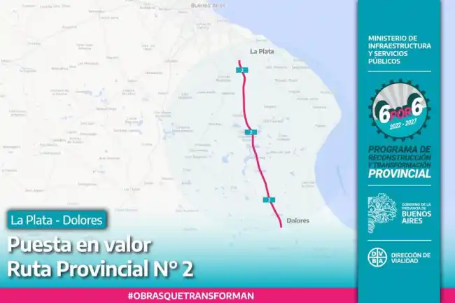 La Dirección de Vialidad de la Provincia de Buenos Aires, dependiente del Ministerio de Infraestructura y Servicios Públicos, publicó el llamado a licitación para ejecutar la obra “Puesta en valor de la Ruta Provincial N° 2”, entre los partidos de La Plata y Dolores.