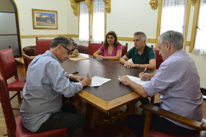 La rúbrica se realizó en el despacho municipal, acompañados por el secretario de Gobierno, Cipriano Pérez del Cerro, y la subsecretaria de Desarrollo Turístico y Productivo, Jimena Arano.