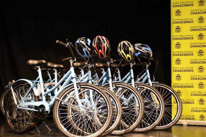 El Teatro Municipal Brazzola, ofició de escenario para la entrega de 50 cascos de motos, 30 bicicletas con sus cascos respectivos, que serán utilizadas por trabajadores municipales para seguir promoviendo la movilidad sustentable, y 23 pases libres multimodales, que redunda en un gran beneficio para nuestra comunidad.