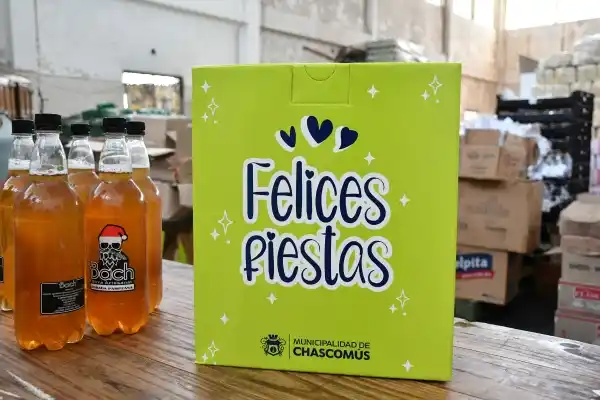 La caja navideña, además de tener un diseño institucional, está compuesta por cerveza artesanal, budín, conservas, además incluye pan dulce, confites, garrapiñadas, sidra, entre otros productos.